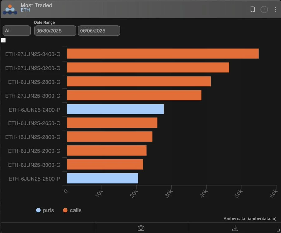据 Deribit 数据显示,ETH 看涨期权的交易量在 6 月以来持续攀升,表明市场对 ETH 短期反弹的预期升温。