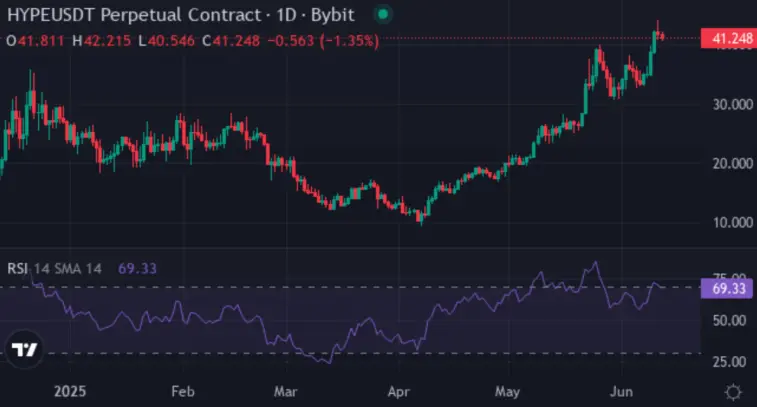 过去六个月暴涨1551%的Hyperliquid(HYPE)持续展现强势——近月涨幅66.41%,周线再涨15.89%。当前32.05-38.23美元交易区间内,其价格仍低于41.58美元(10日均线)和39.14美元(100日均线)。