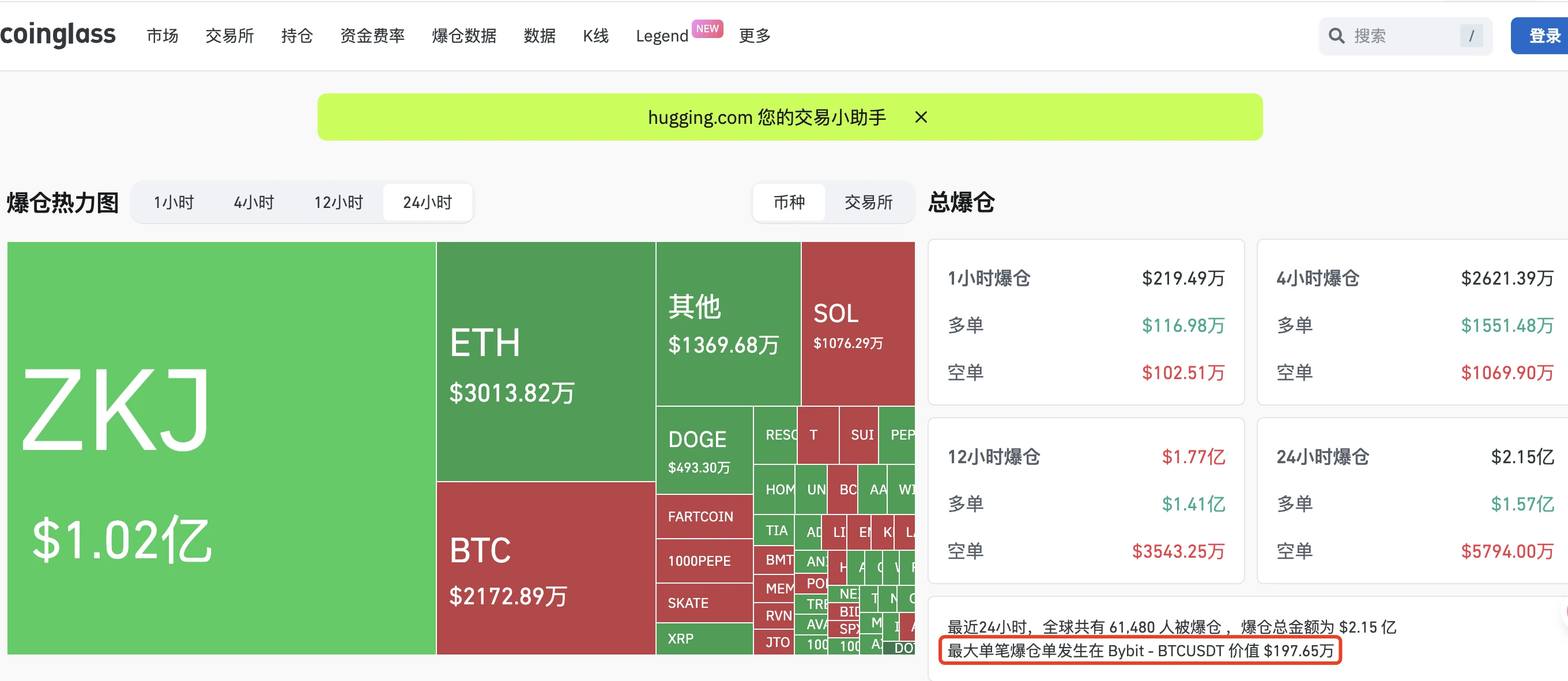 最大单币爆仓发生于 Bybit