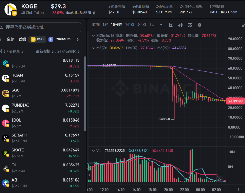 币安Alpha「ZKJ、KOGE暴跌81%」,用户遭流动性狙击:资产刷完剩2成