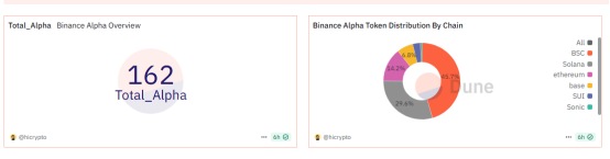 市占率提升,直接利好的无疑是自家的生态。截止到目前,在Alpha已上线的162个币中,BSC上的项目占比达到45.7%,其次是Solana,占比29.6%,以太坊占比14.2%。而从交易量来看,Alpha中排名前20的币种,有17个都是BSC原生项目。据 @defioasis数据面板,自3月中推出 Alpha 2.0截至6月11日,Binance Wallet在BSC网络的交易地址中已有 39,569 个地址交易量超过100万美元,其中超过1000万美元交易量的地址有45个,1个地址的交易量超过了1亿美元。