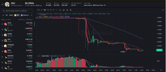就在昨日晚,币安Alpha上最受欢迎的两大币种ZKJ和KOGE双双闪崩,在短短两小时内暴跌了80%,插针式跌幅让市场一片哗然。作为币安Alpha上在BSC交易量最大的代币,持有者损失可谓惨重,在当晚这两小时,ZKJ爆仓就达到了9400万美元,而此前参与Alpha刷分的用户也陷入恐慌,平均损失超800美元,远大于自己人肉刷分空投的平均金额。