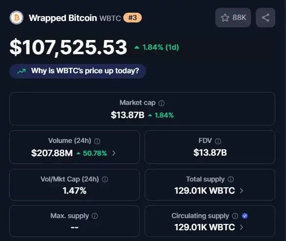 Tron DAO Reserve 长期持有巨额比特币,为了方便在链上做抵押,团队会把部分 BTC 跨链转换成 WBTC,用来支撑 USDD 的稳定运行。可以说,没有 WBTC,就没有今天 TRON 上 USDD 的安全缓冲。根据 CoinMarketCap 的最新数据,WBTC 的市值高达 137.84 亿美元,是全球最大的比特币映射资产之一。
