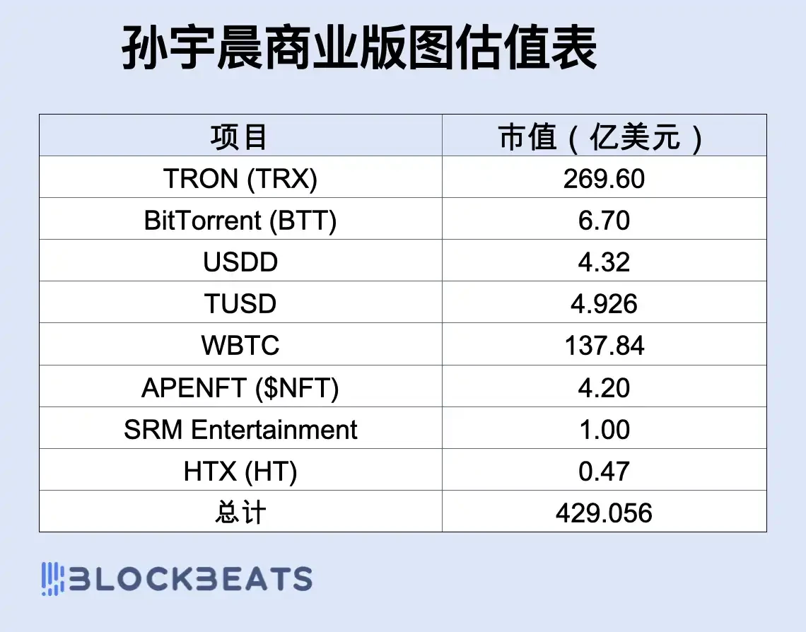 在这个看似分散、实则紧密联动的网络背后,仅从律动 BlockBeats 能找到的数据来看,孙宇晨手里握着的核心资产市值,已经超过 430 亿美元。