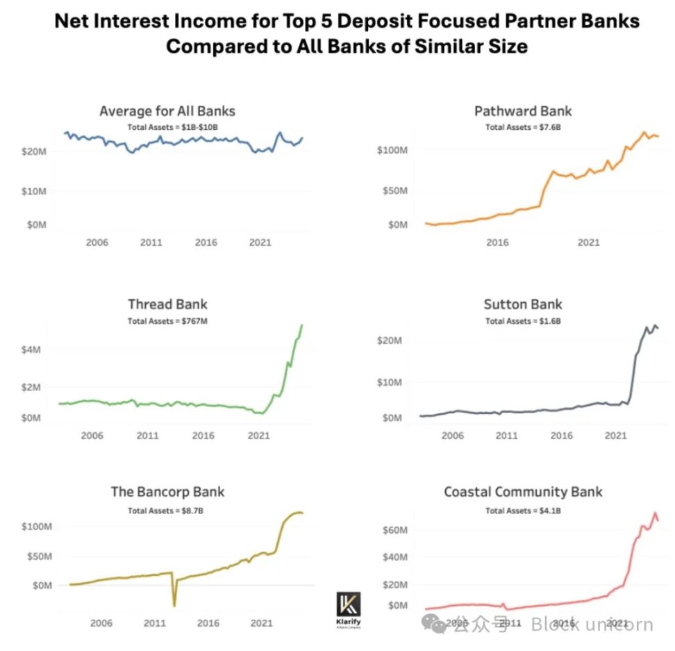 通过结合 API、移动和云技术,金融科技公司还受益于少数「赞助银行」的帮助,这些银行看到了为这一新领域提供银行渠道、存储资金和转移资金的机会。一些银行因「易于合作」而大获成功。