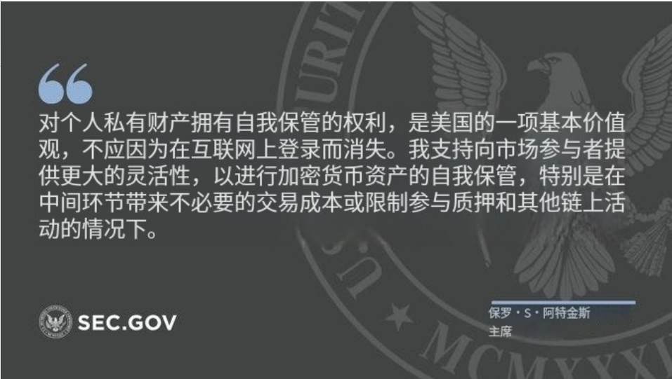 Atkins 倡导数字资产的自主托管权,并称其为“美国的基本价值观”。这为以下类型产品提供了支持: