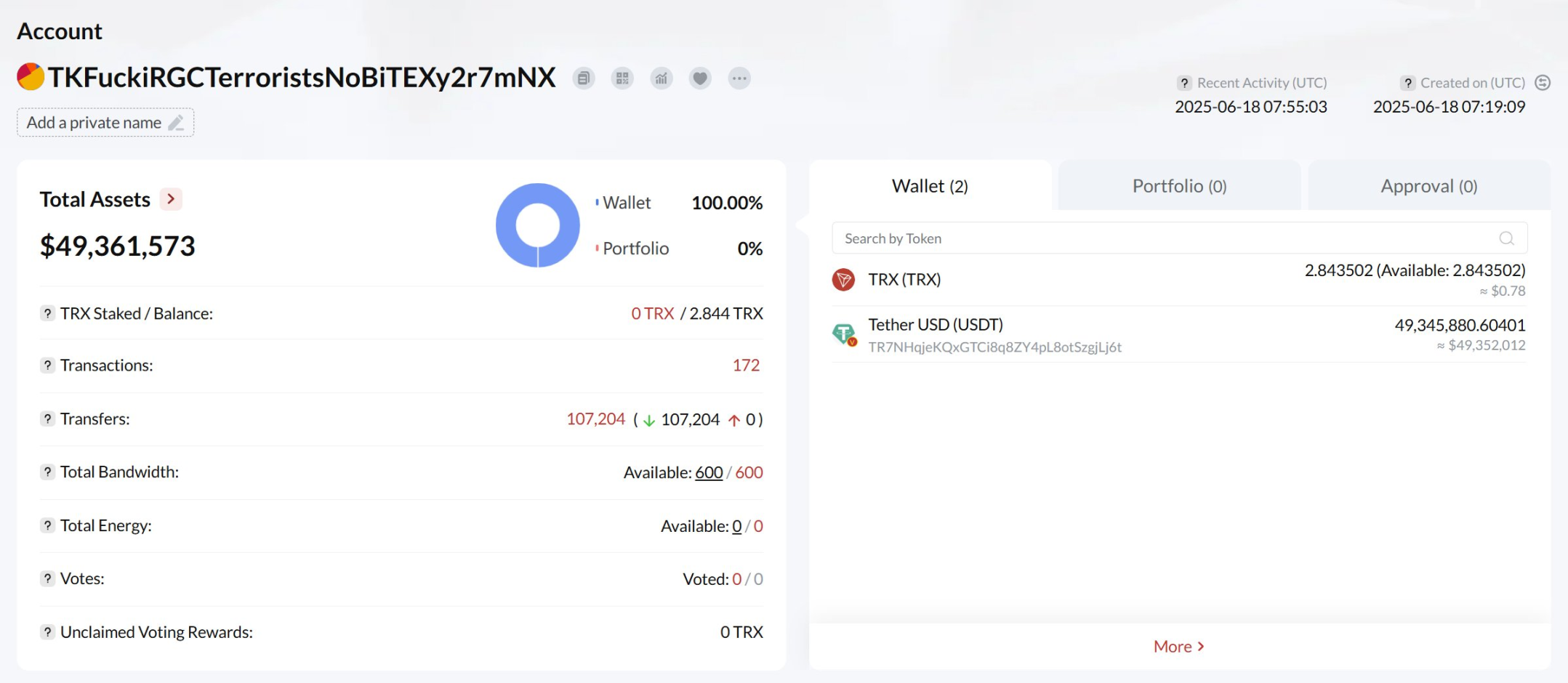 截至目前,已有近 8200 万美元的加密资产受到波及,其中大部分为稳定币 USDT。尽管 Tether 公司有能力对涉嫌地址进行冻结,但据链上数据显示,大部分资金仍停留在原账户中,似乎并未有立即转移或洗钱的打算。这种「停滞」行为被社区解读为示威性质大于经济动机。