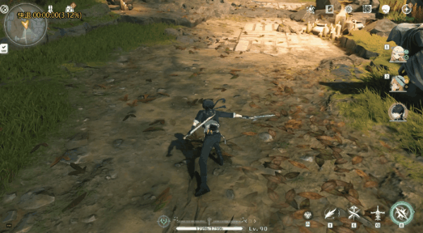 就说玩家普遍都能感知到的草地植被,其实就是库洛重新做的,有着浓浓的法环味道。这些重做的草地植被不仅更加茂密,交互也更加真实,玩家走过后会直接触动植被、带飞叶子。而落在地上的叶子,也能被角色的技能动作带动扬起。