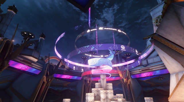 更别提,库洛还针对七丘地区做了专门的光影调教,以呈现出逼真、动态的环境。你在不同时间段去观察同一处场景,往往会呈现出不一样的观感。比如卡庇托山城在白天的时候,由于环境光影偏黄,就呈现出古典建筑的庄严神圣感。而到了晚上,绚丽的彩色占据主导,就使得主城有一种赛博朋克的美感。