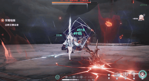 比如利用主角和卡提希娅在各自时空分别乘坐升降梯时,完成双方视角的丝滑切换。这一手法在本次主线中有过多次应用,特别是最后卡提希娅与BOSS决战时,主角与卡提希娅两条线通过快闪镜头不断切换,由慢到快,最终在双方使出同一招式的时候,完成跨时空并肩而战。整体设计十分精妙,又带有电影的质感。