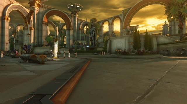 关于这点,玩家从第一次进入卡庇托山城应该就能感受到。这里的城门、街道、英雄石像、竞技场等一切场景建筑,只看一眼就足以让人感到宏伟。很多时候,当我在城中眺望或俯视时,总会不经意间瓦解对自身尺度的认知,产生空间压迫下的渺小感,如同置身戴克里先宫等古罗马建筑中。
