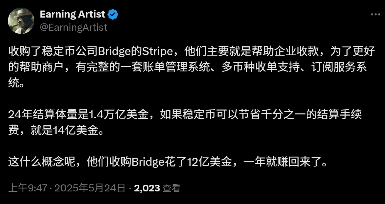 事实上,这一趋势已经在发生,从 Circle 推出 Programmable Wallets 与 CCTP(跨链 USDC 清算),再到全球支付巨头 Stripe 去年底 11 亿美元收购稳定币 API 服务提供商 Bridge,都是在 尝试连接链上账户、稳定币资产与商户收款端,绕开传统支付链路中的发卡行与卡组织。