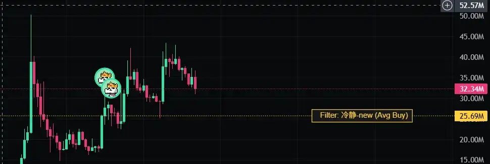 与之截然相反的是,中文知名链上 KOL 冷静 的操作,虽然他在 400 万美元市值的均价就已经买入 200 Sol,但在价格上涨至 700 万美元市值时,就抛售了大量筹码。后来叙事进一步发展,他选择在市值达到 1100 万美元时出售大量筹码后,又在 2500 万美元处追高,最终将均价拉至 2600 万美金左右,目前仅仅浮盈 370 Sol。