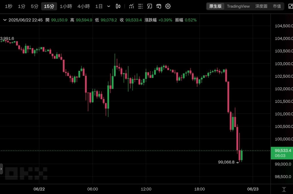 比特币撰稿当下最低报 99,066 美元,失守十万美元大关,创下 5 月 8 日以来的最低。