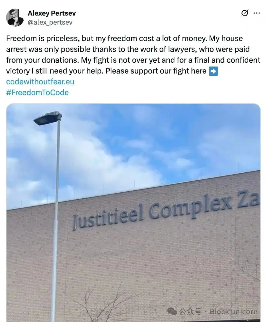 斯托姆以 200 万美元保释金获释后,进入了法律的困境。在面临联邦政府的全面压力下,他毕生积蓄都化为律师费。共同创办人 Roman Semenov 仍然在俄罗斯逍遥法外。𫔭发人员 Alexey Pertsev 于 2024 年 5 月在荷兰被捕,被判处五年以上有期徒刑 —— 后来,川普兑现了承诺,他被释放了:
