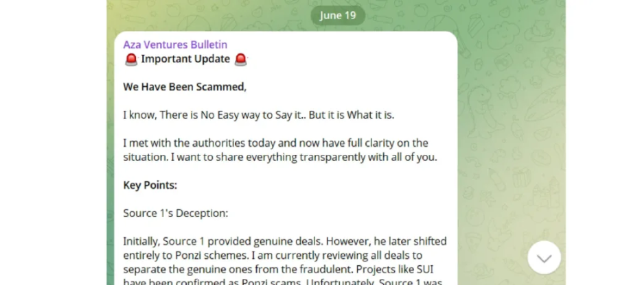 6 月 19 日,主导这些交易的风险投资团体 Aza Ventures 公开宣布,他们自己也成为了骗局的受害者。