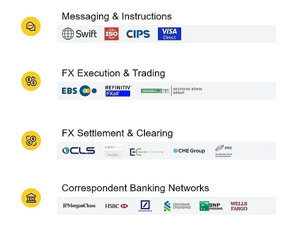 - 外汇结算与清算:外汇结算层确保交易得到妥善结算,从而避免任何一方违约的风险。它们采用支付对等支付 (PvP) 模式,确保货币兑换的双方同时进行,从而消除交易对手风险。如果没有这样的系统,交易可能会失败,即一方交付货币,但无法收到预期的资金。