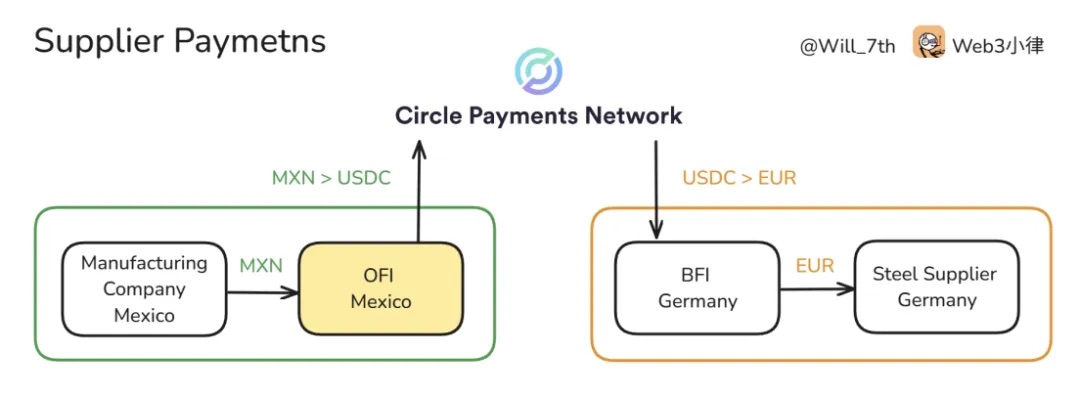 USE CASE :一家美国公司通过传统银行电汇向一家德国供应商支付 500 万美元。