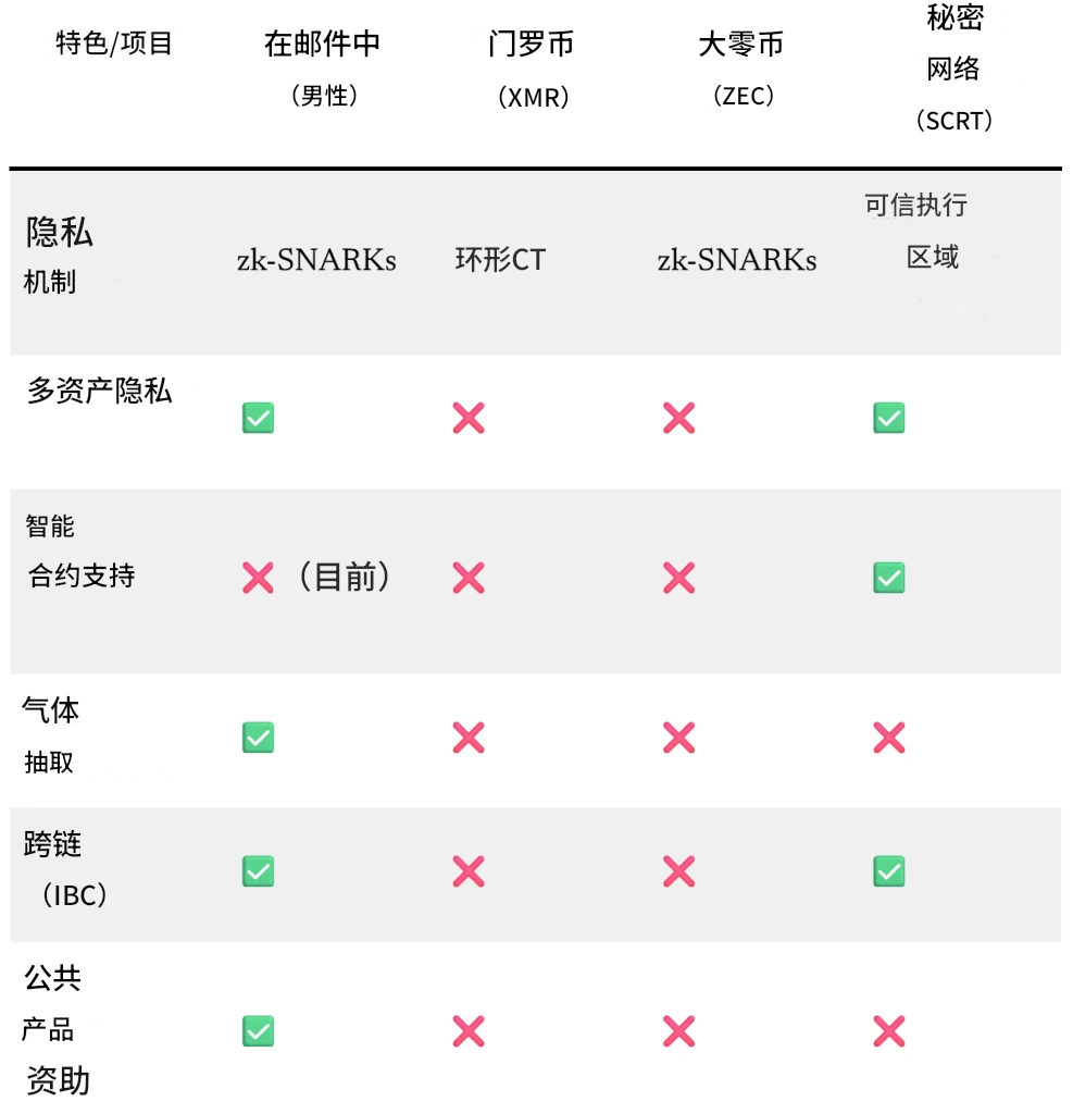 其他隐私币只保护自己的代币,但 Namada 可以对 ETH 、 ATOM 、 USDT (通过 IBC)、NFT、代币化资产,乃至未来来自以太坊等 EVM 链的跨链资产进行隐私转账。