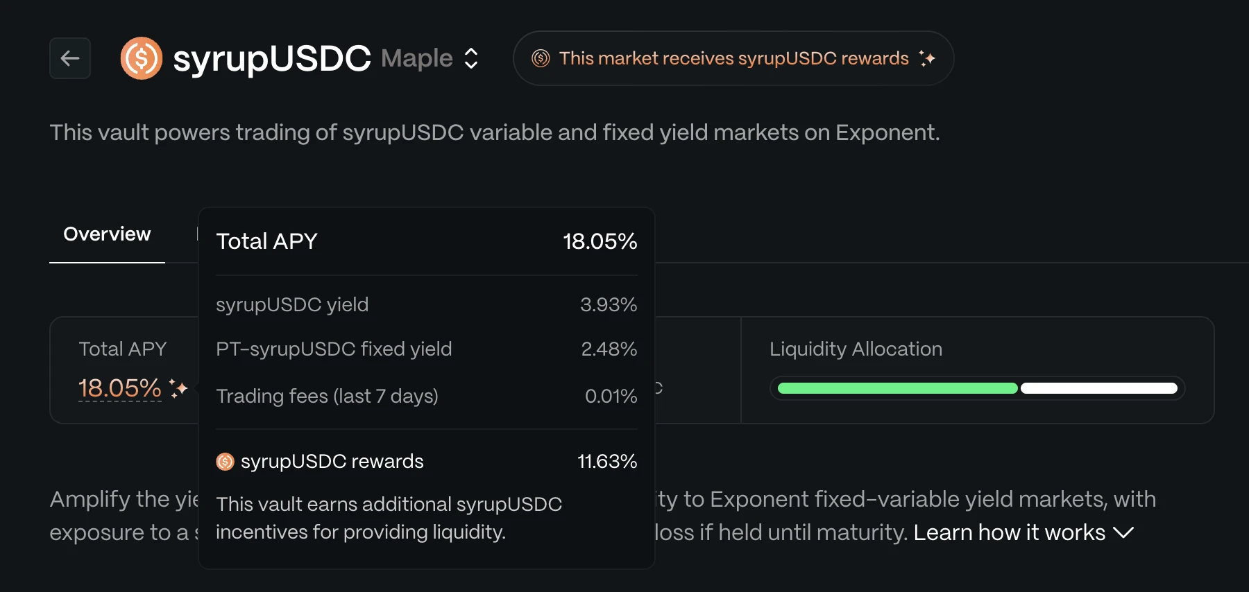 传送门: https://www.exponent.finance/liquidity/maple-syrupusdc-25Sep25