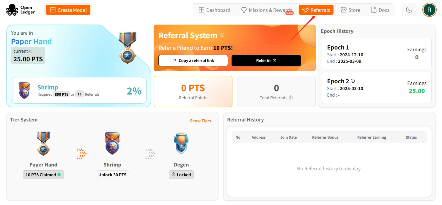 STEP 2. 点击“Referrals”板块,邀请好友可获得额外 PTS 积分奖励。