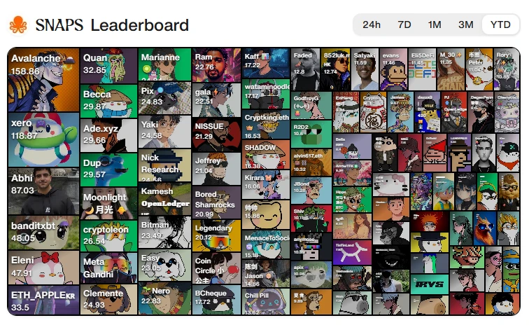 具体参与方式,有此前相似,首先在 Cookie.fun 平台注册账户,并多在 X 平台上发推文来介绍 OpenLedger 来帮助项目获得更大的影响力,并建议撰写的推文带上 #Openledger 、 #snaps 等标签以便平台更好追踪。根据平台数据,目前 Sapien 的 Snaps 榜单中,排名第一为 KOL Avalanche (可参考相关推文文案),为 158.86 积分,上榜的第 100 名仅有 4.99 积分,相差悬殊。