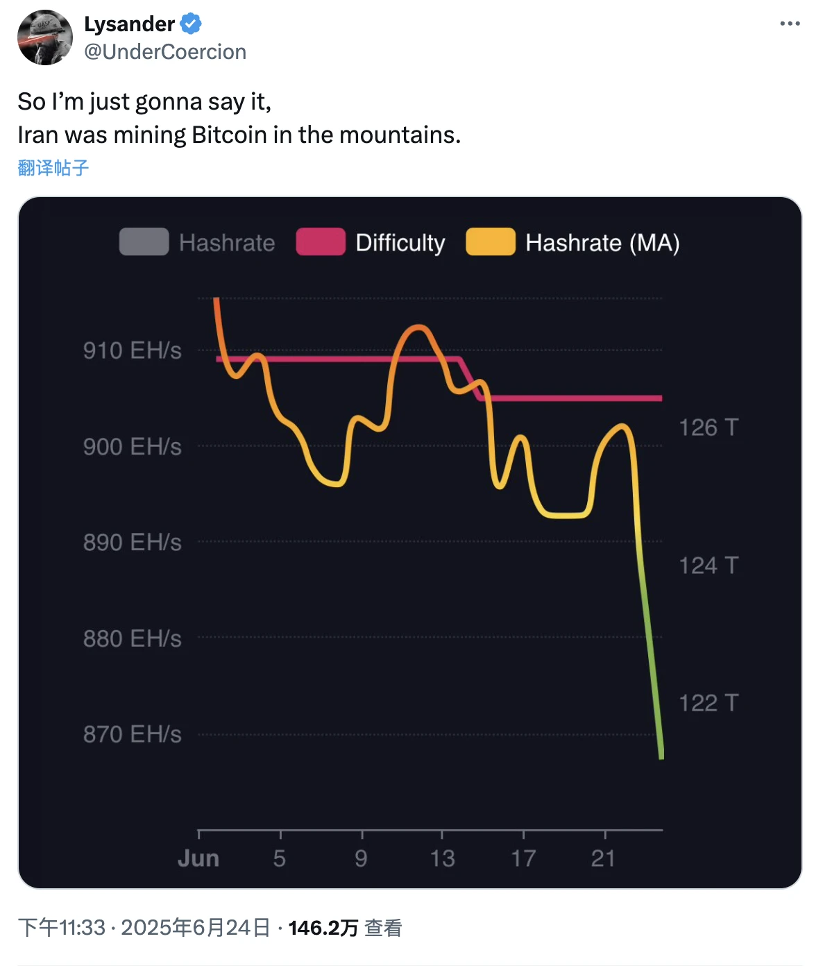 当地时间 6 月 21 日,美国通过所谓的“午夜之锤”行动轰炸了位于福尔多、纳坦兹和伊斯法罕三处的伊朗核设施。同一天,比特币哈希率均线同步也出现了断崖式下降,这场意外的巧合使得加密货币社区纷纷猜测 —— “伊朗是否在利用其核设施秘密进行比特币挖矿?”