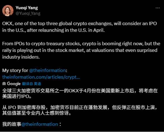 当然,在The Information的采访中,OKX 首席营销官Haider Rafique虽提到未来肯定会考虑IPO,但同时并未表明时间点,因此可以推断,上市虽有筹备意愿,但明确的时间表还未予以安排。