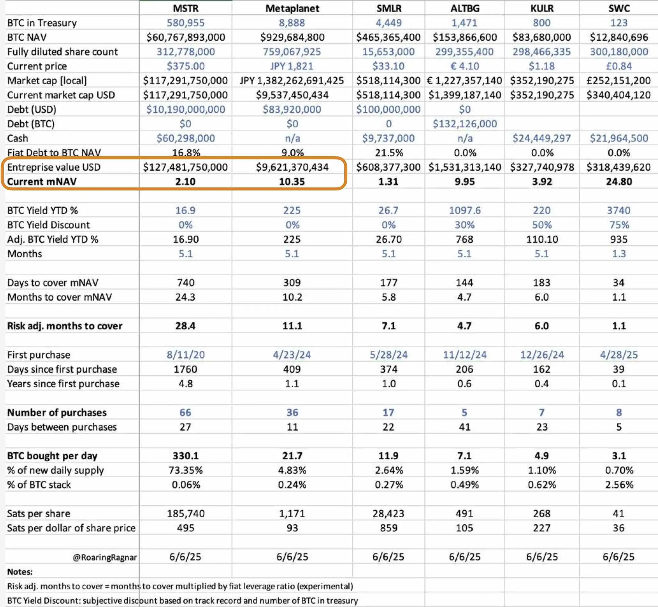 而更多中小型加密储备公司也在迅速崛起,复制 Metaplanet 的高溢价模式,但溢价的原因不尽相同。