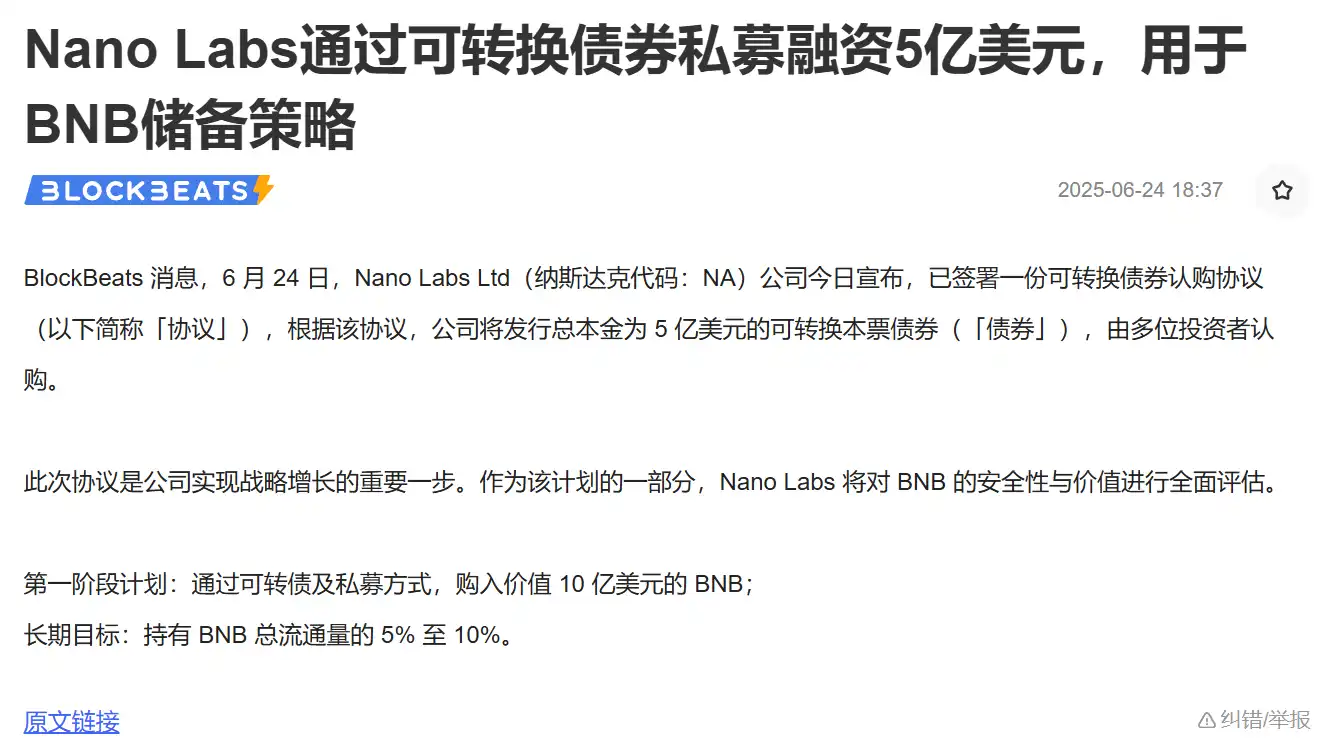 二、微策略扩散:BNB 金融化叙事的杠杆引擎
