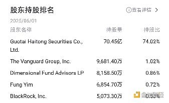 据公𫔭资料,国泰君安国际绝对大股东为中国最大券商国泰海通集团,其占比高达 74%。