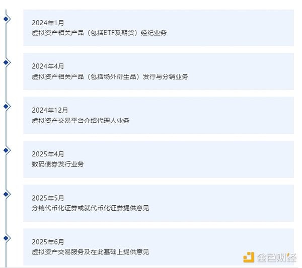 2025 年 5 月,国泰君安国际发文称,根据香港证监会发布的《中介人从事代币化证券相关活动通函》,就代币化证券分销业务以及数码债券发行业务分别提交相关业务计划,均已获监管机构确认无进一步问题。其指出,国泰君安国际于 2025 年 1 月 21 日向香港证监会提交财富管理相关业务计划,拟在原有证券交易基础上,向客户分销代币化证券或就代币化证券提供意见,计划涵盖的代币化证券型别包括:挂钩多种标的资产的结构性产品(如结构性票据、场外衍生品)、证监会认可基金及非认可基金以及债券。 香港证监会于 2025 年 5 月 7 日发出确认邮件,对该计划无进一步问题。代币化证券指通过分散式帐本技术(DLT,如区块链)以数位形式实现证券全生命周期管理的传统金融工具(如股票、债券、基金等),性质基本上是以代币化作为包装的传统证券,以技术手段实现形态革新。