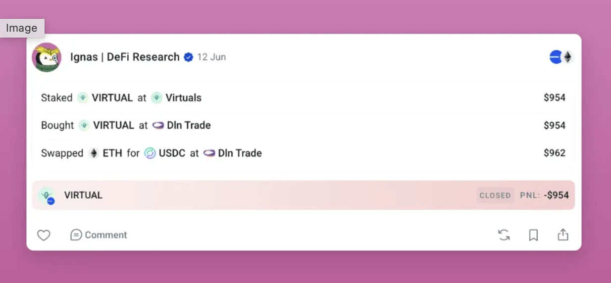 0x PPL 是我最喜欢的加密工具之一,但似乎很少有人知道或使用它。0x PPL 是一个社交媒体平台,但与普通的 X 式帖子不同,你可以看到你关注的人如何使用他们的钱包。 虽然 Kaito 和 Dexu 关注的是关注者和心智份额,但0x PPL 展示了他们如何用钱包来行动。 0x PPL 的钱包搜索团队在将钱包与关键意见领袖(KOL)联系起来方面做得非常出色。可以看到 大多数交易是代币的买入/卖出,也会看到向协议的存款。