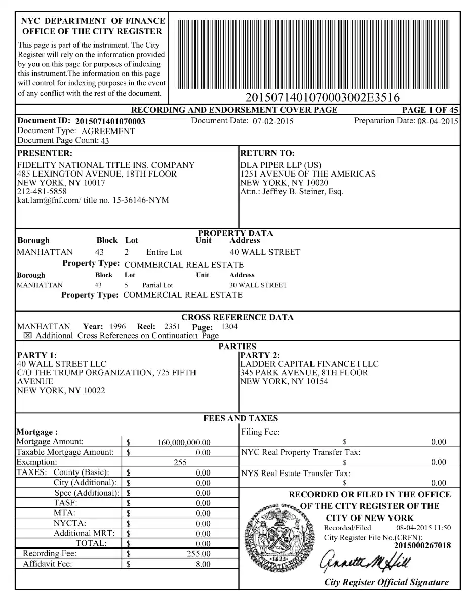 也正是在这样的背景下,特朗普在 2015 年决定为这栋大楼进行再融资。他从 Ladder Capital 获得了 1.6 亿美元的贷款,以旧换新,替代此前向 Capital One 借来的 500 万美元即将到期的债务。