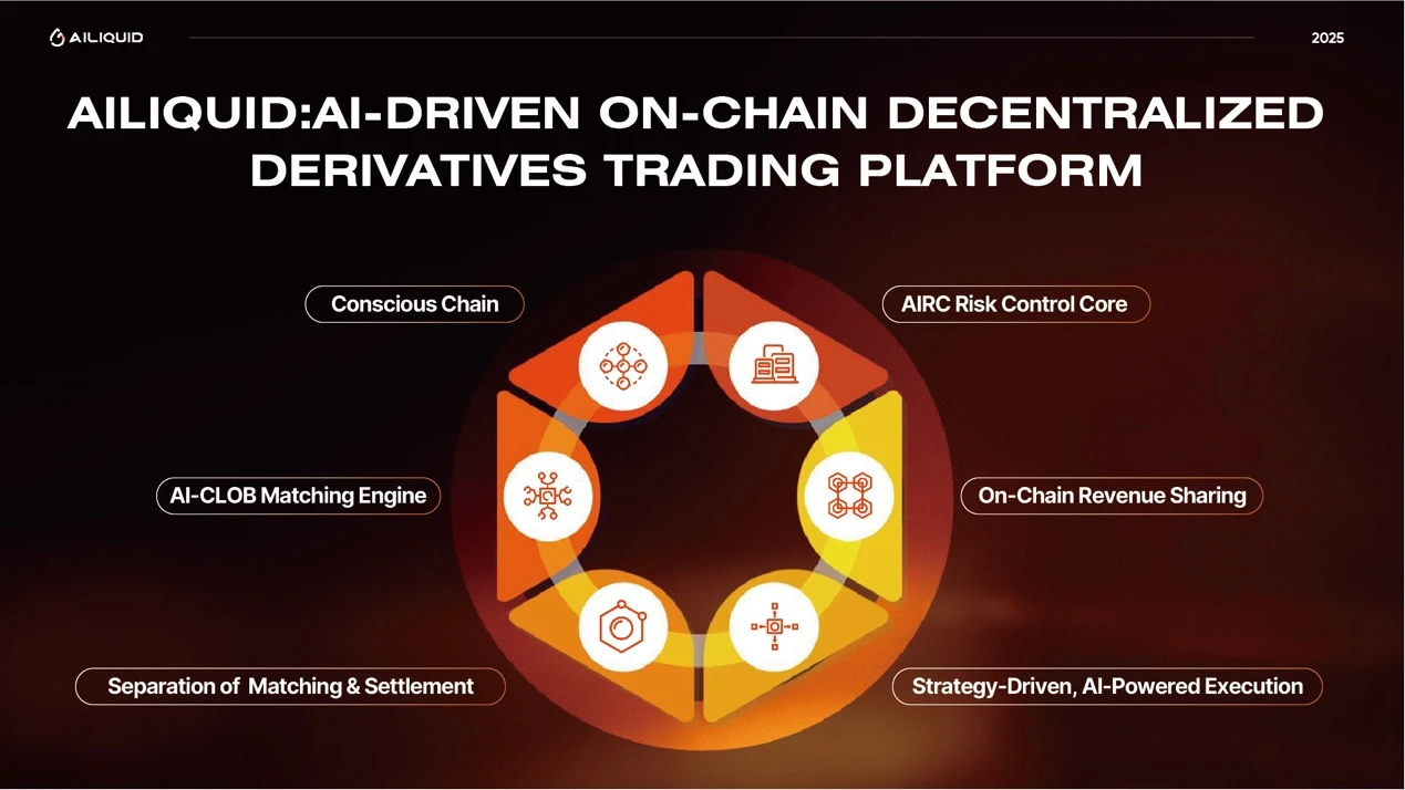 6 月 26 日,AI 驱动链上合约交易平台 AILiquid 宣布正式上线。平台基于自主研发的智能公链 Conscious Chain,整合 AI-CLOB 撮合引擎、AIRC 风控系统以及多链跨链支持,致力于构建面向未来的智能金融基础设施。