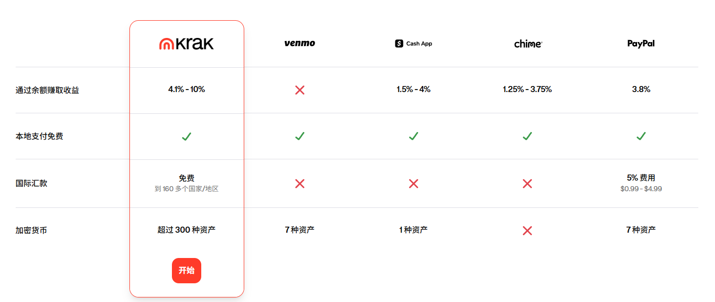 - 消费与收益帐户: Krak 允许用户在进行支付的同时赚取回报,无需锁定期、最低存款要求或订阅费用。于推出时,符合条件的用户可通过 USDG 稳定币(Paxos 发行的美元稳定币)获得高达 4.1% 的年化收益率,同时在 20 多种数字资产上可获得高达 10% 的收益。