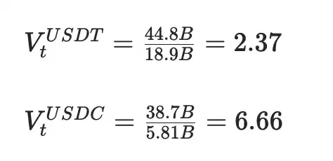仅看供应量并不足以反映稳定币的实际效用。更重要的是,稳定币的实际价值在于其资金的流动效率。