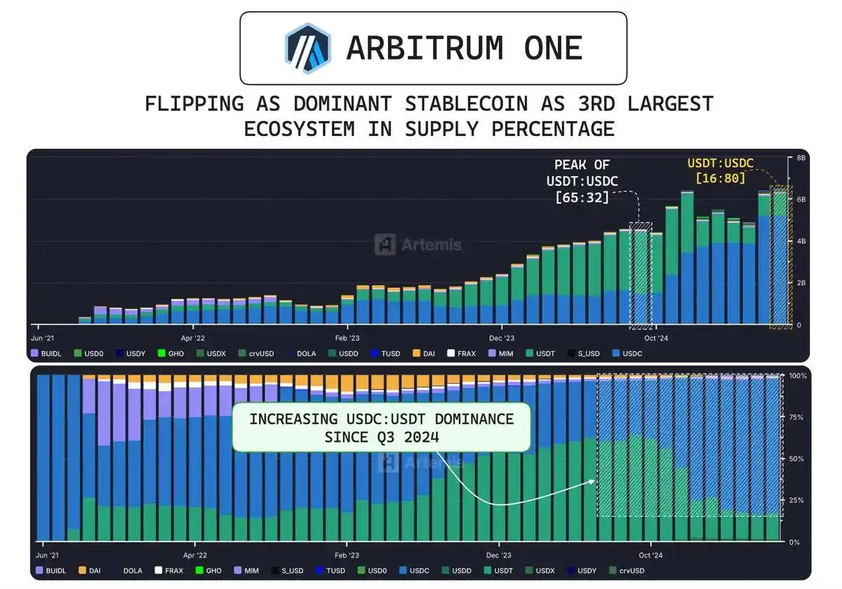 这一变化反映了 Arbitrum 核心生态系统与其扩展集成之间的独特结构性契合,为稳定币主导趋势创造了条件。