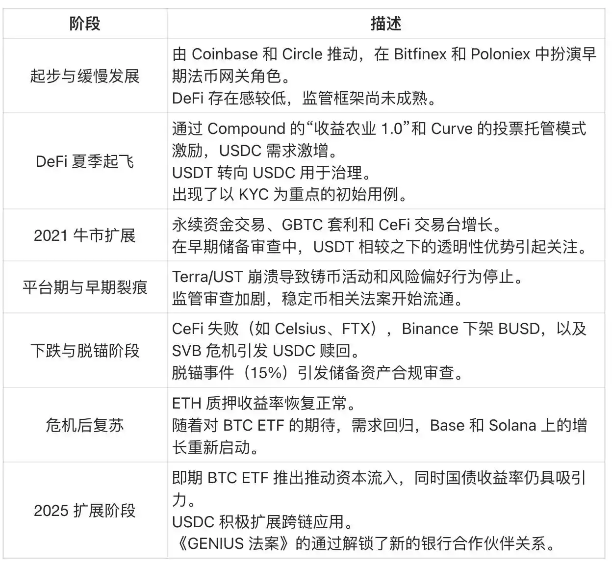 通过扩张与收缩的视角观察 USDC 的历史,我们可以发现其供应变化与加密行业整体时间线上的重要拐点息息相关。