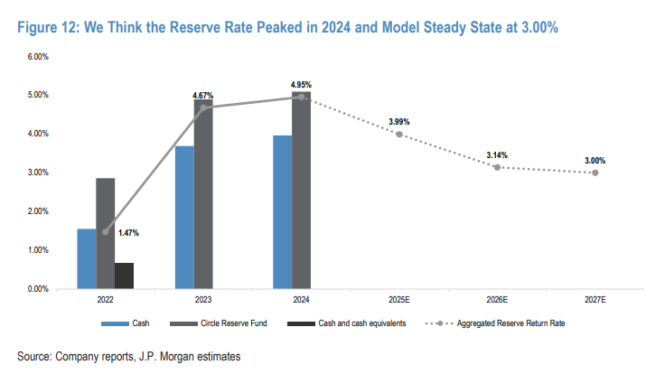 其次,Circle 业务对利率变化极为敏感。摩根大通估算: