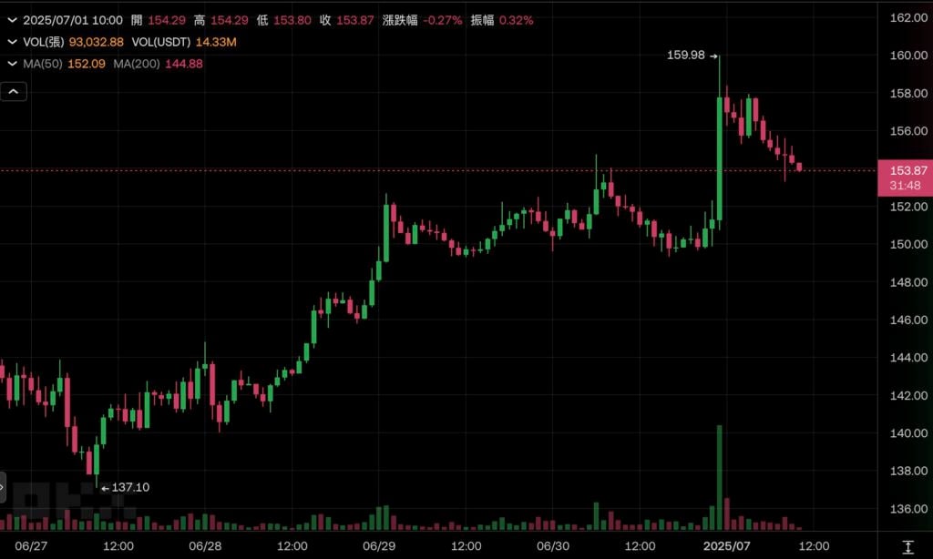 消息曝光当下,SOL 一度冲高逼近 160 美元,不过随后卖压涌现,截稿前现报 153,87 美元。接下来就等著看周三是不是真的会上缐?以及后续机构和散户对该产品的接受程度。