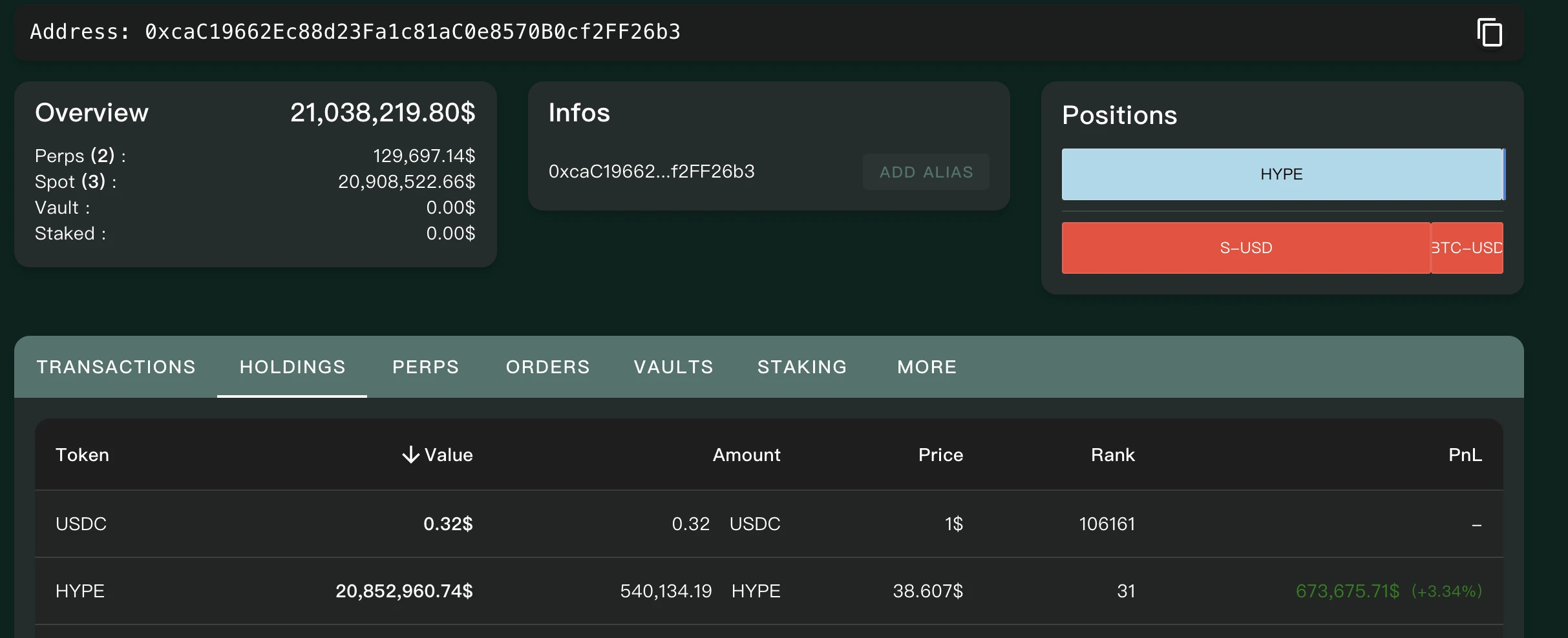 6 月底,知名投资机构 Galaxy 和 ManifoldTrading 将共计 3000 万美元的 USDC 存入 HyperLiquid,并开始购买 HYPE 代币;此前,美股上市公司 Lion Group Holding Ltd.(股票代码:LGHL)还曾配置 200 万美元购买 HYPE 代币。