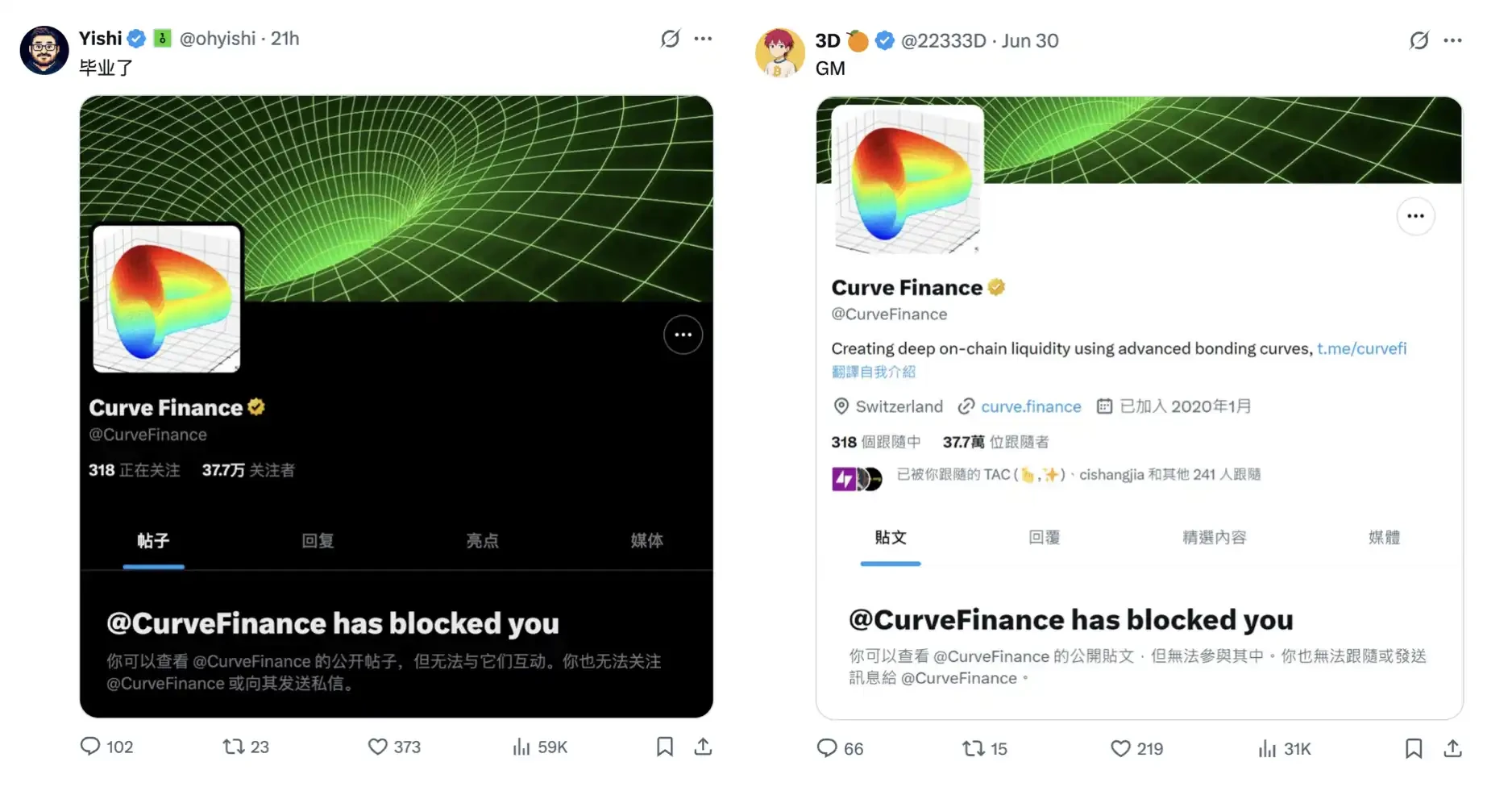 3D: 我觉得 Curve 在事件发生后的「切割」行为是完全不合理的。你想我就算是个小 KOL,如果我曾经推荐过某个矿池,哪怕我没收一分钱、没有任何利益关系,这个矿出事了,我也会第一时间发声,告诉关注我的人现在出了什么问题,我会去跟进。