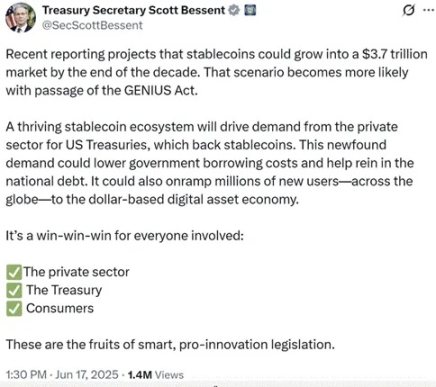 Arthur Hayes:美国稳定币“阳谋”揭秘,6.8 万亿资金如何成为国债市场的救命稻草?
