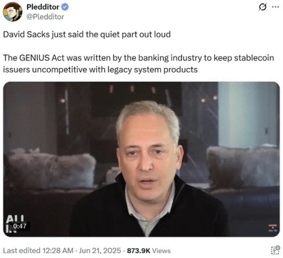 美国前特朗普总统时期的「加密货币沙皇」David Sachs 也持相同观点。想必许多加密行业的企业捐赠者会颇为恼火。投入了那么多竞选捐款,结果却被悄悄挡在利润丰厚的美国稳定币市场之外。或许他们该改变策略,真正倡导金融自由,而非只求在 TBTF 银行 CEO 们的「夜壶」下争一张小板凳。