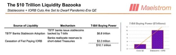 TBTF 银行采用稳定币,将创造高达 6.8 万亿美元的短期国库券购买力;美联储停止支付准备金余额利息,将创造高达 3.3 万亿美元的短期国库券购买力。