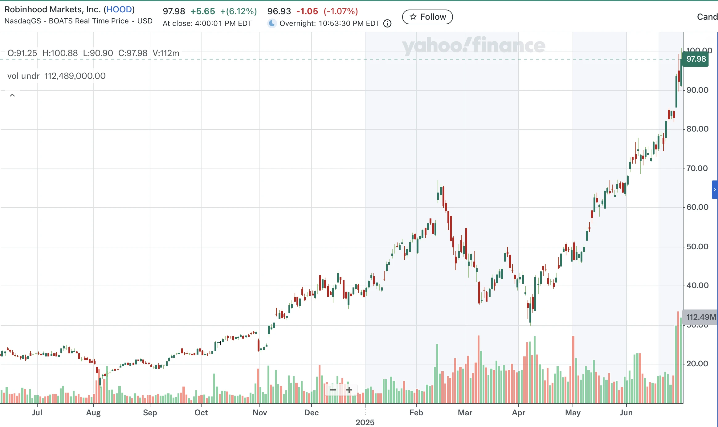 2025 年 6 月 30 日,Robinhood 在法国戛纳的“To Catch a Token”活动中宣布了一项颠覆性的举措:为欧盟用户推出超过 200 种美国股票和 ETF 的代币化交易服务,并首次将 OpenAI 和 SpaceX 等未上市企业的私募股权纳入代币化范畴。这一消息如同一颗重磅炸弹,迅速推动 Robinhood 股价飙升近 13% ,创下历史新高,也点燃了全球金融市场对股票代币化的热烈讨论。