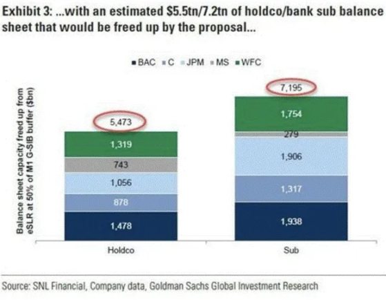 只要监管允许,TBTF 银行将用这些存款买进国债,一箭双雕:既赚了钱,又协助财政部筹资。SLR 新规放开后,银行将获得约 5.5 万亿美元的国债购买空间。