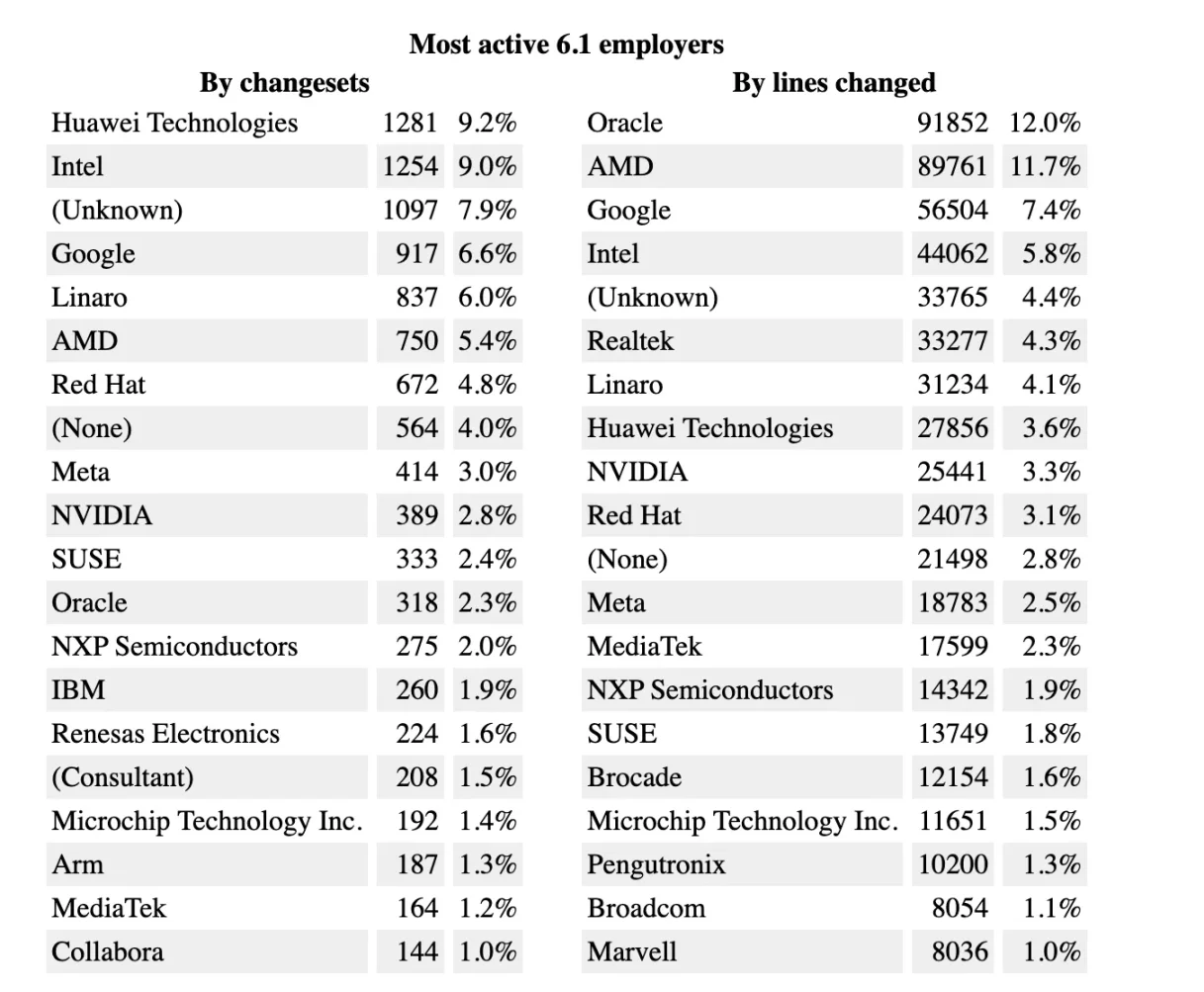 问题在于开源创新史上,将资本激励与可分叉代码绑定鲜有成功。亚马逊、IBM、联想、谷歌和微软等企业直接激励开发者贡献开源。2023 年,Oracle 竟是 Linux 内核变更的主要贡献者。为何营利机构会投资这些操作系统?答案显而易见: