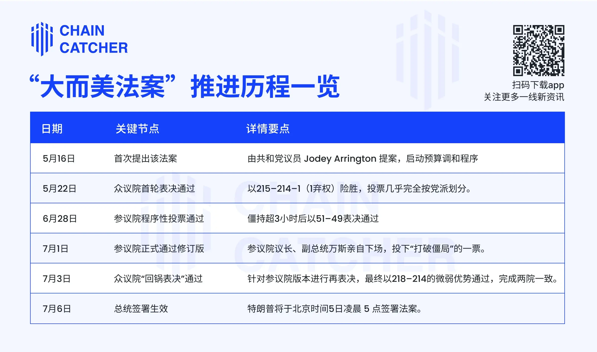 虽然《美丽大法案》并未直接涉及加密货币议题,但业内人士普遍认为其通过对加密市场依然是利好消息。